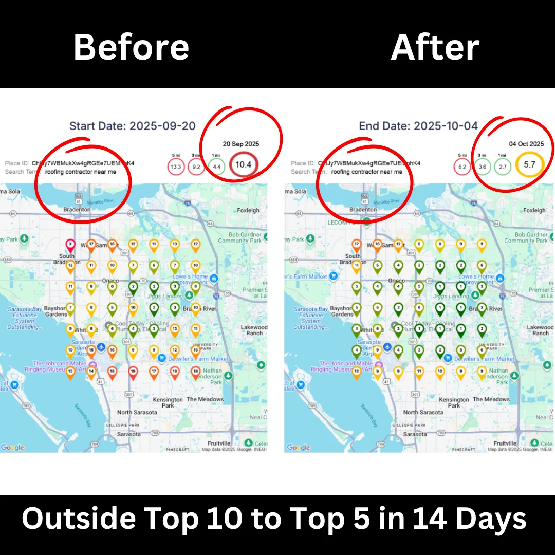 Serious roofing companies scale with Google Maps. We get roofing companies exceeding $2M+ annually ranked top 3 in every location they open....or we pause billing. Built for owners growing toward a multi-location sale or a strategic market domination.
